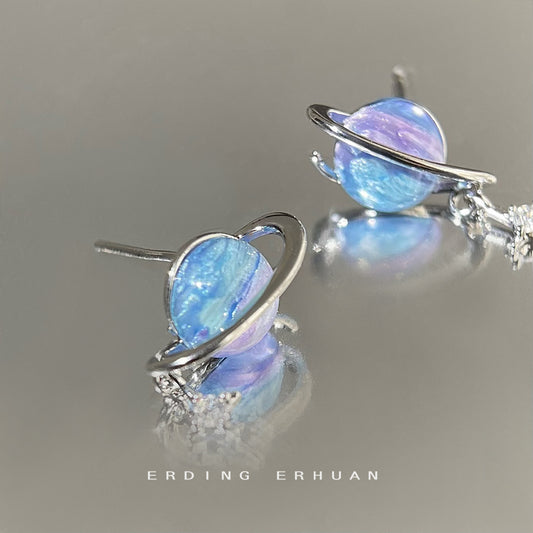 C廠【2886】甜酷風炫彩星球個性耳環小眾設計感微鑲鋯石芒星高級感時尚耳飾女 25.03-3
