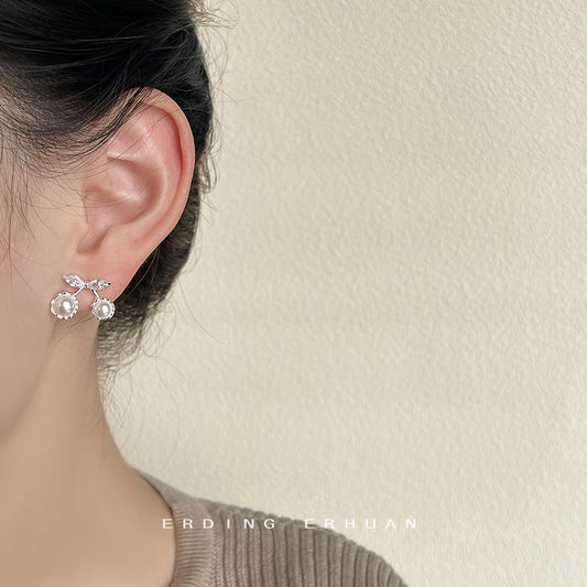 C廠【3067】清新甜美微鑲鋯石櫻桃耳環小眾設計感水果氣質百搭優雅耳飾高級感 24.03-4