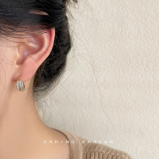 C廠【3076】微鑲鋯石玫瑰金耳環法式溫柔圓形設計感時尚通勤百搭高級感耳飾女 25.04-1