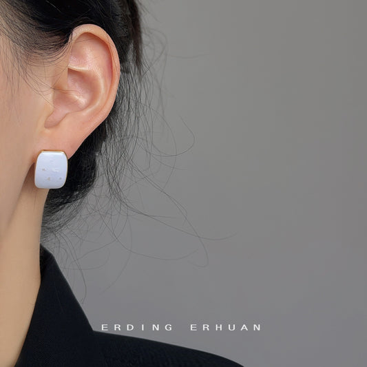 C廠【2834-2835】通勤百搭幾何奶油白滴釉碎貝殼耳環法式簡約高級感莫蘭迪氣質耳飾 24.01-1