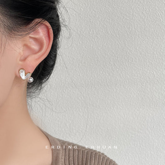 C廠【3061】天然貝殼愛心耳環甜美可愛設計感心型珍珠高級感氣質通勤百搭耳飾 25.01-2