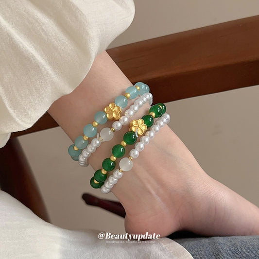 A廠【HB2665】新中式花朵珍珠串珠手鍊兩件組復古漢服配件手串個性百搭手環手飾 24.06-2