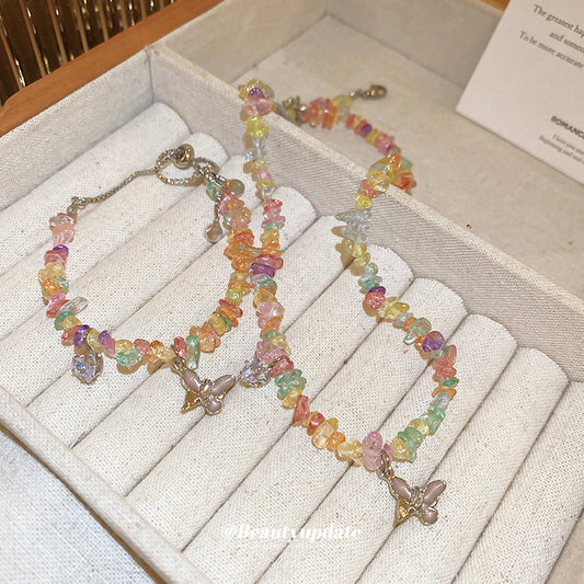 A廠【HB2180-HN5779】多巴胺鑲鑽蝴蝶愛心鋯石項鍊套裝小清新甜美設計感鎖骨鏈新款項飾 24.04-4