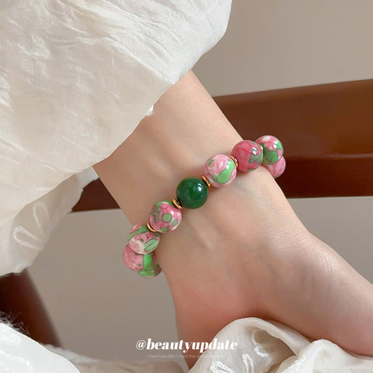 A廠【HB2635】真金電鍍紅綠漸層琉璃手鍊新中式優雅百搭手串國潮甜美氣質手飾女 24.06-1