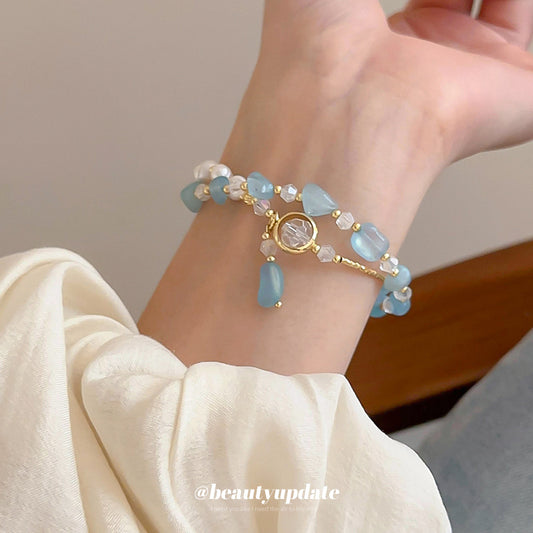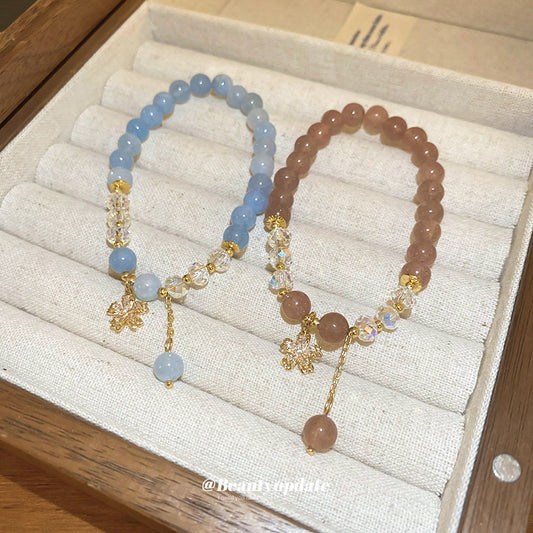 A廠【HB2684】小清新藍粉水晶花朵串珠手鍊復古個性優雅手串少女心甜美百搭手飾 24.06-2