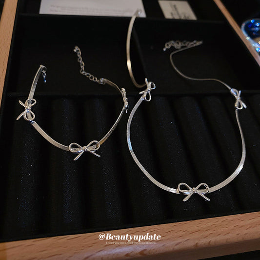 A廠【HB2245-HN5946】簡約蝴蝶結choker項鍊套裝氣質高級感個性鎖骨鏈時尚通勤項鍊 24.05-1