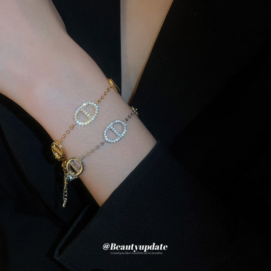 A廠【HB1856】真金電鍍小眾高級感鋯石橢圓手鍊潮流時尚手環個性輕奢通勤手飾女 24.08-4