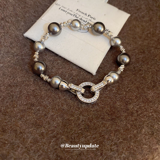 A廠【HB2016】不規則珍珠鋯石圓形手鍊通勤高級感氣質手環時尚百搭簡約手飾 24.01-2