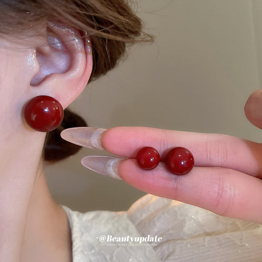 A廠【HE22130】925銀針港風簡約酒紅珍珠耳環2024新款通勤耳環網紅同款時尚百搭耳飾 24.08-5