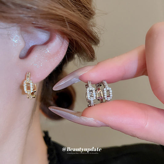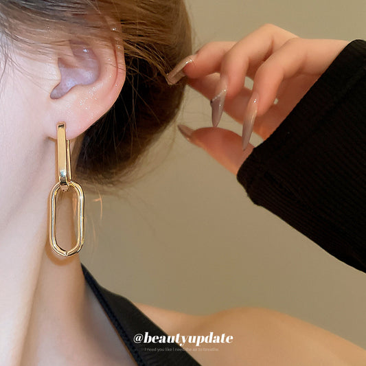 A廠【HE22032】跨國新款極簡亮面鏈條耳扣女時尚設計耳環高級感輕奢氣質通勤耳飾 24.08-3