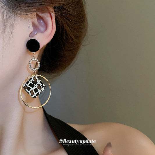 A廠【HE22148】925銀針誇張豹紋字母幾何耳環時尚高級感耳墜歐美跨國氣質個性耳環女 24.08-5