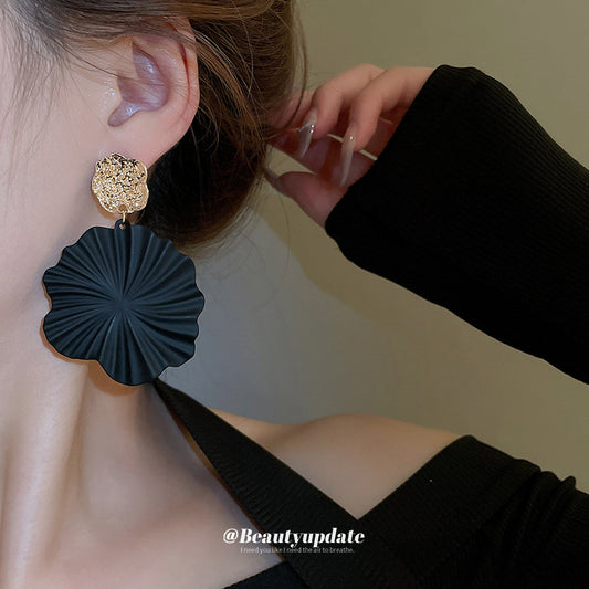 A廠【HE22026】925銀針誇張黑色螺旋花葉掛墜耳環個性時尚設計耳環高級感通勤耳環女 24.08-3