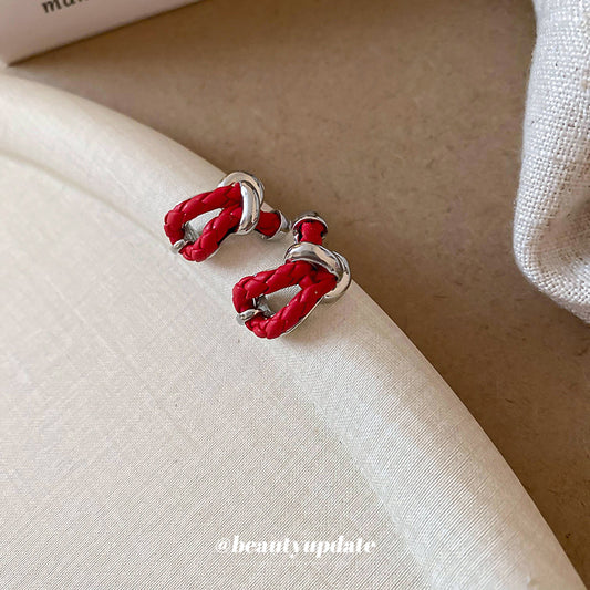 A廠【HE22151】925銀針人造皮革扭曲麻花耳環個性潮流設計感耳環甜酷小眾高級感耳環 24.08-5