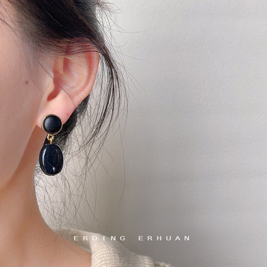 C廠【3557】時尚通勤高級感黑色系電鍍14K百搭通勤耳飾 24.01-1