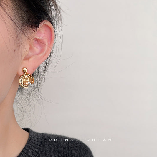 C廠【3535】老錢風時尚通勤氣質百搭設計感微鑲鋯石鍍14K個性耳飾 24.01-1