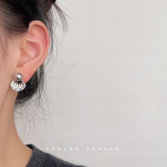 C廠【3546-3547】施家品質玻璃珍珠高級感鍍14K扇貝形狀耳環氣質優雅耳飾 24.01-1