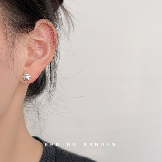 C廠【3543】迷你版清新可愛霧面銀色小星星銀針耳環氣質通勤日常百搭耳飾 24.01-1