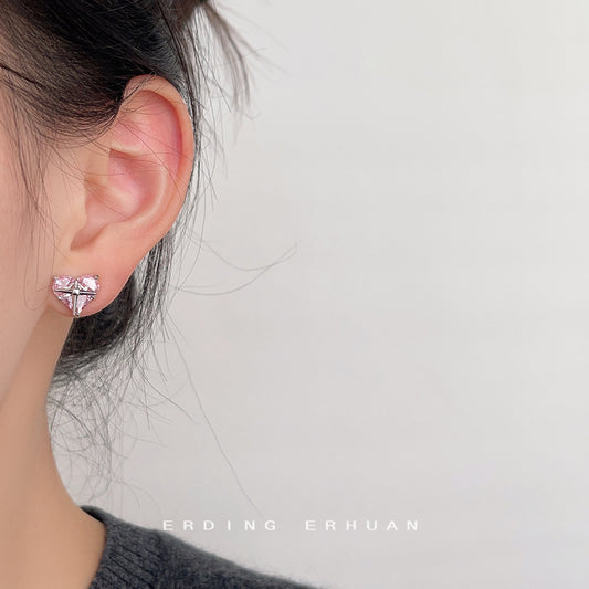 C廠【3548】實體很閃甜酷風粉色鋯石心型耳環個性小眾設計師耳飾 24.01-1