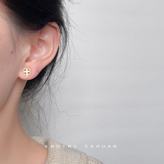 C廠【3554】不對稱設計迷你版日常通勤簡約個性鍍14K銀針幸運草耳環 24.01-1