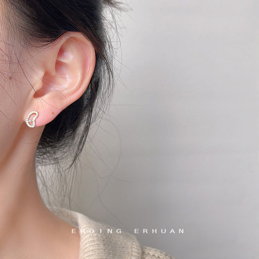 C廠【3555】微鑲鋯石小豌豆電鍍14K簡約迷你可愛銀針耳環氣質個性耳飾 24.01-1