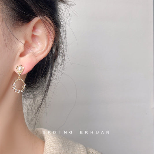 C廠【3558】微鑲鋯石電鍍14K清新甜美花環春款耳環 氣質簡約百搭森系耳飾 24.01-1