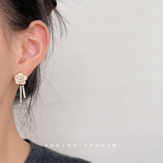 C廠【3541】春天款~森系清新山茶花一款兩戴設計感鍍14K滴油耳飾 24.01-1