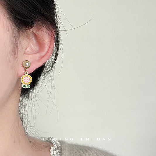 C廠【3651】春夏小清新向日葵可愛甜美滴油花朵鍍14K銀針耳飾 24.03-2