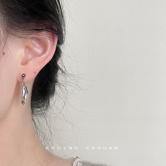 C廠【3657】手工設計感流蘇鏈條銀色葉子輕奢通勤耳飾 24.03-2
