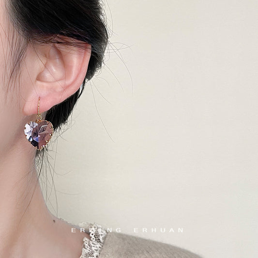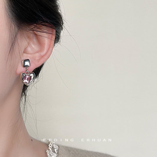 C廠【3682】個性甜酷風玻璃水晶粉紅心型銀針耳飾ins少女心新款耳環飾品 24.03-2