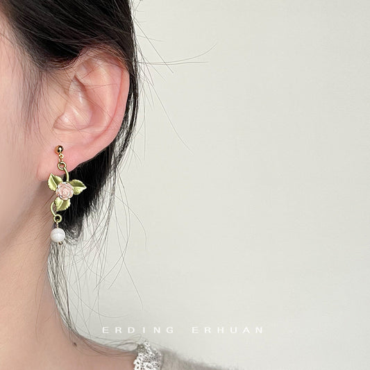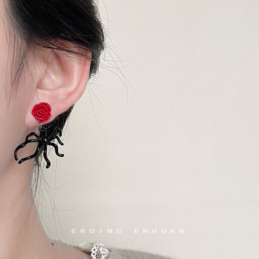 C廠【3654】個性甜酷風液態玫瑰花銀針氣質簡約ins潮設計感耳環飾品 24.03-2