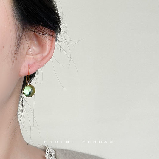 C廠【3679-3717】輕奢風透明綠玻璃水晶球耳環法式復古品質優雅氣質耳環 24.03-2