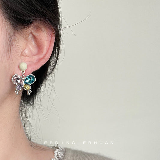 C廠【3653】春夏款玻璃水晶時尚通勤彩色蝴蝶高級感耳飾 24.03-2