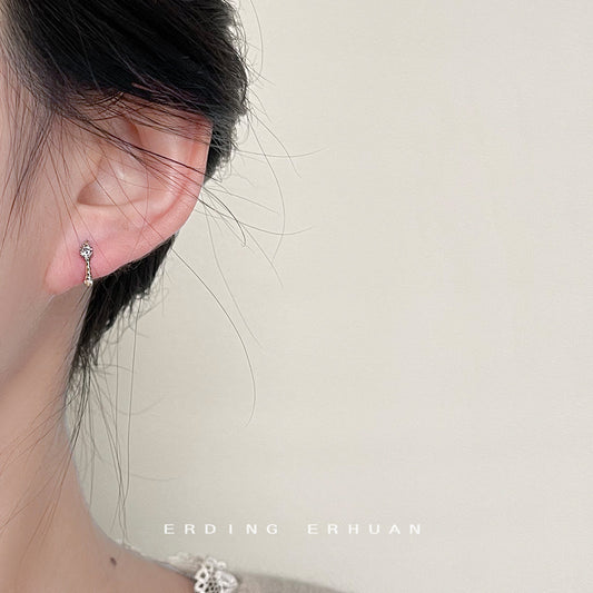 C廠【3675-76】極簡主義日常通勤百搭氣質簡約圓形鋯石耳扣個性ins小巧耳飾 24.03-2
