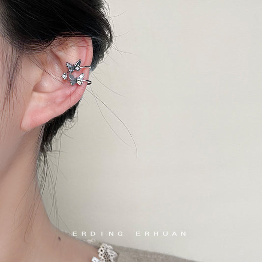 C廠【3655】三件式個性ins潮設計感耳骨夾設計感蝴蝶銀色甜酷風創意新款耳飾 24.03-2
