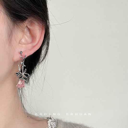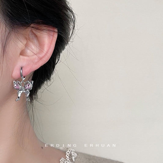 C廠【3677】甜酷風設計感個性ins蝴蝶粉紅玻璃水晶潮2024年新款耳飾 24.03-2