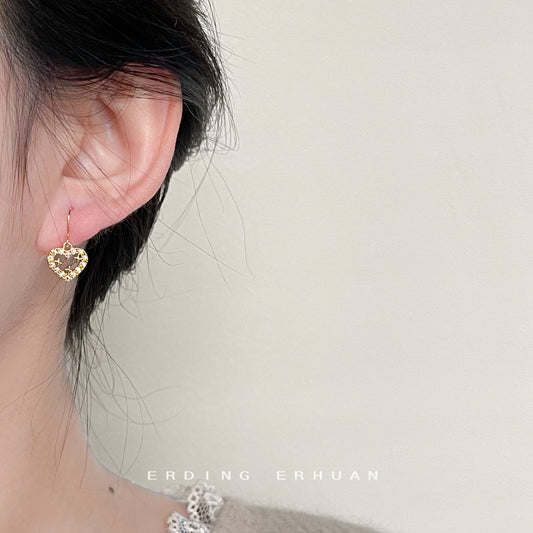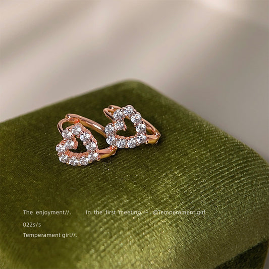 C廠【3688】玫瑰金色微鑲鋯石心形耳扣氣質優雅簡約通勤百搭輕奢感耳飾女 24.03-2