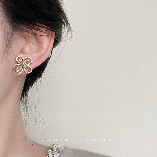 C廠【3711】升級版鍍18K真金加厚微鑲鋯石彩色花朵輕奢高品質耳飾 24.04-1