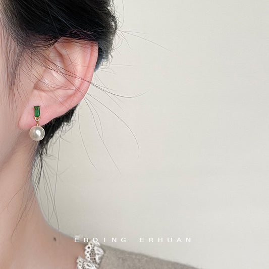 C廠【3695】微鑲鋯石施家玻璃珍珠不對稱設計電鍍14K手工法式耳飾女新款耳環 24.04-4