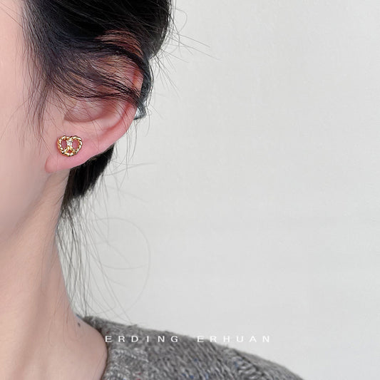 C廠【3703-3704】升級版輕奢風電鍍18K真金高級感通勤百搭圓形耳扣新潮個性耳飾女 24.04-4