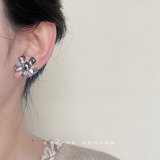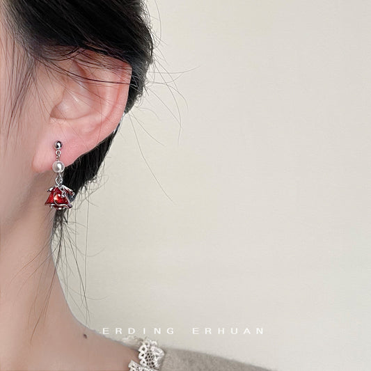 C廠【3690】法式復古滴油琺瑯玫瑰花銀針耳飾手工設計感藝術氣息耳環 24.04-1