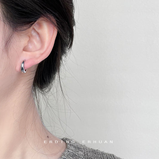 C廠【3696】長期主義通勤百搭金屬感耳環冷淡風極簡光面水滴環形素圈耳圈耳飾 25.03-4