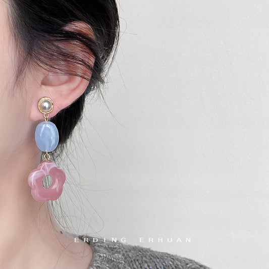 C廠【3728】清新甜美~不對稱設計感原創手工藝銀針耳環花朵飾品女新款耳環 24.03-4