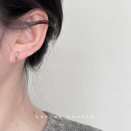 C廠【3743】時尚通勤高級感微鑲鋯石鍍14K幸運草簡約輕奢銀針耳飾耳環女 24.04-2