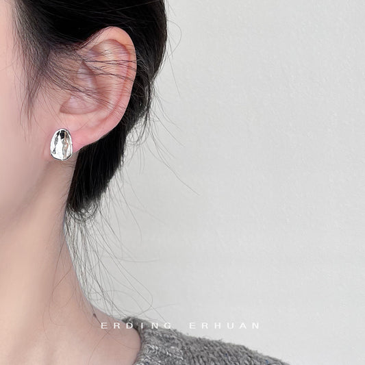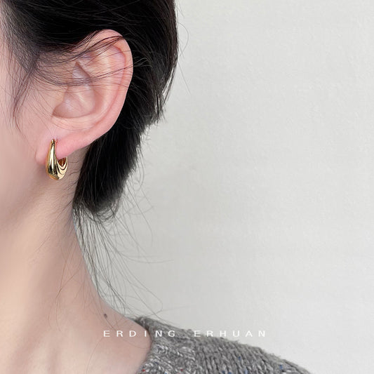 C廠【3739-40】曲面高級感輕奢風鍍14K簡約通勤時尚銀針耳環氣質百搭耳飾女 24.03-4