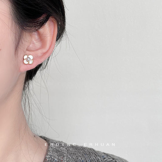 C廠【3725】真貝殼高級感四葉幸運花輕奢風鍍14K通勤百搭耳環耳環女飾品 24.04-2