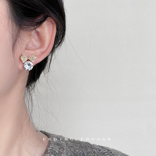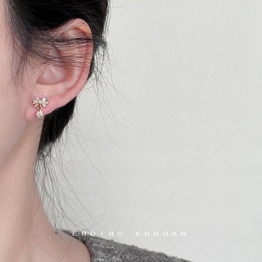 C廠【3720】微鑲鋯石輕奢風鍍玫瑰金時尚高級感優雅小巧蝴蝶結耳環氣質耳飾女 24.04-1