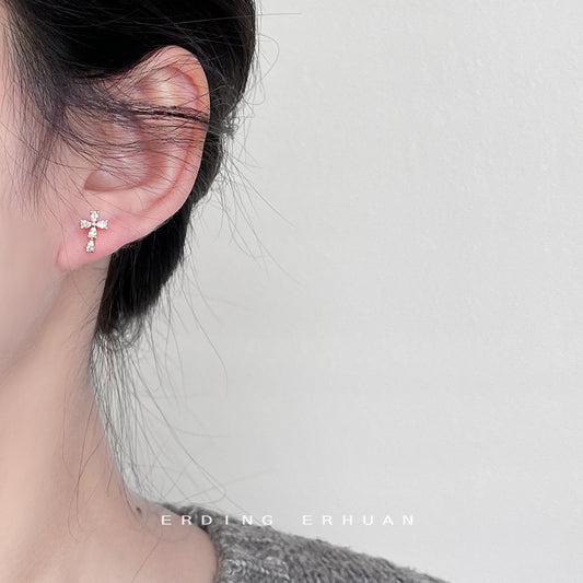 C廠【3736】迷你版微鑲鋯石個性十字架通勤簡約百搭日常耳環 24.03-4