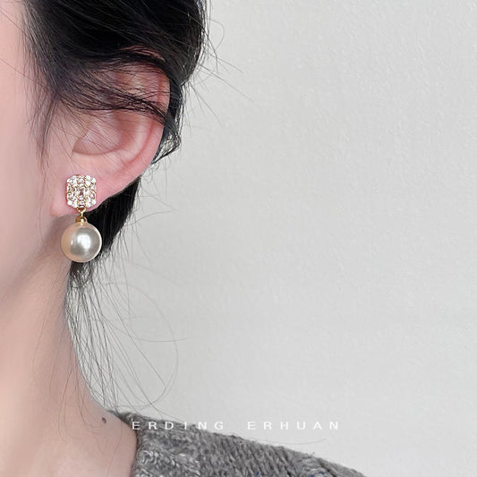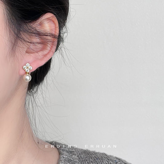 C廠【3721-3722】高級感輕奢風微鑲鋯石施家玻璃珍珠鍍14K通勤耳飾女新款耳環 24.04-1