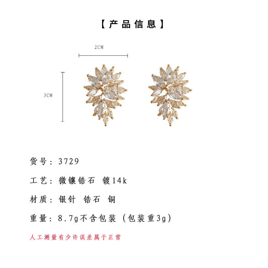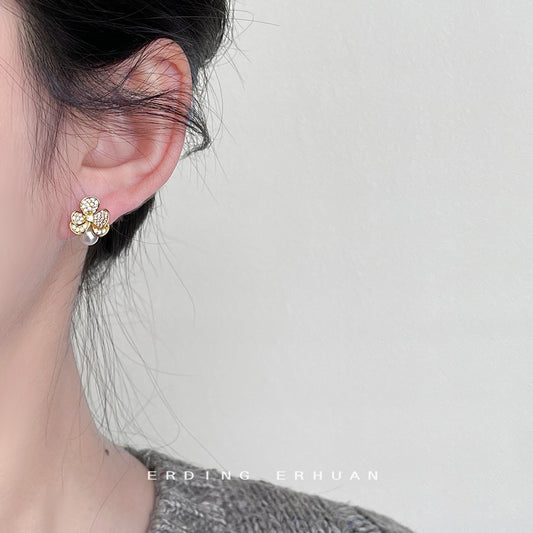 C廠【3724】微鑲鋯石輕奢風高級感簡約時尚通勤百搭三葉草鍍14K銀針耳飾 24.04-1