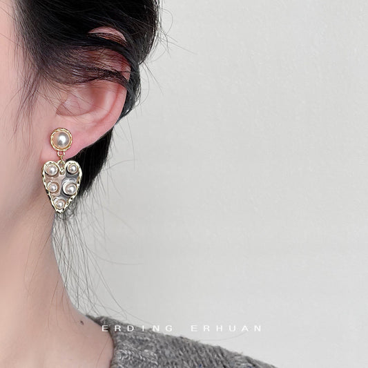 C廠【3730】藝術氣息~甜美風愛心形鍍14K珍珠耳飾 24.03-3
